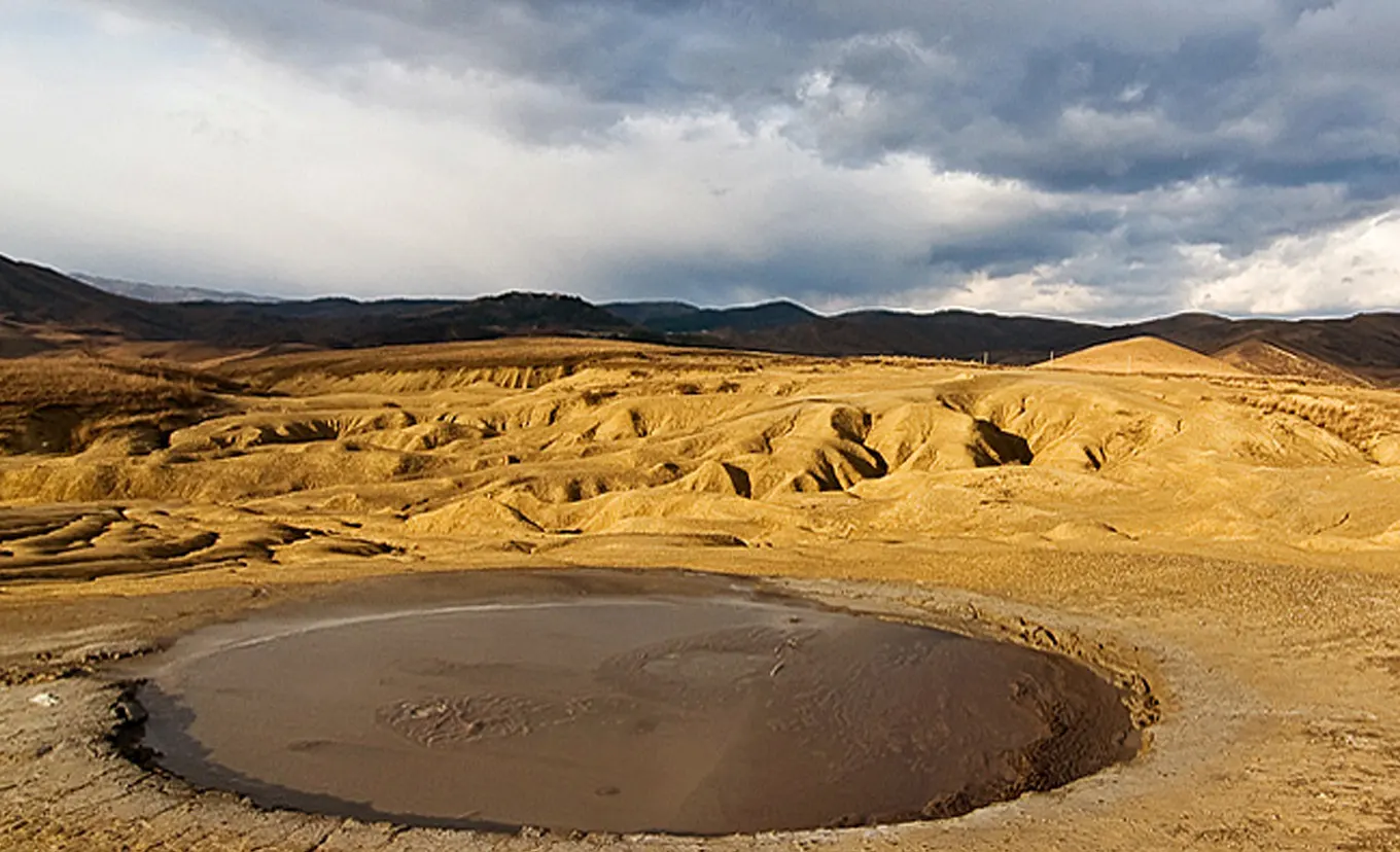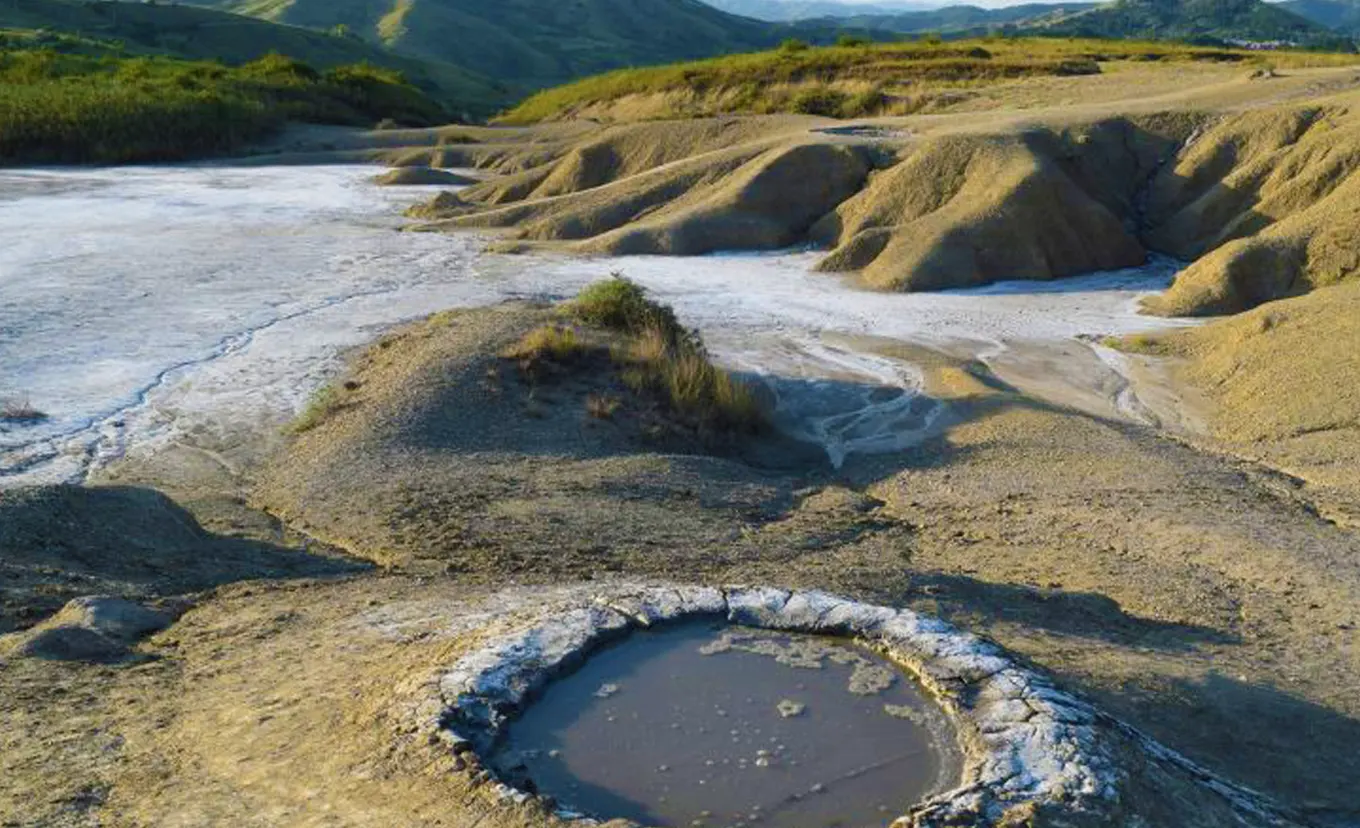Erleben Sie eines der seltensten Naturphänomene an den Schlammvulkanen von Berca. Die blubbernde, mondähnliche Landschaft ist ein geologisches Wunder, das durch Gasemissionen entsteht, die Schlamm an die Oberfläche drücken. Spazieren Sie entlang der Pfade und staunen Sie über das außerirdisch wirkende Terrain.