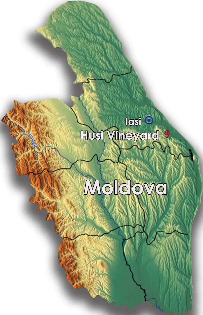 Ansichts KarteEingebettet in der südöstlichen Umarmung des zentralmoldauischen Plateaus entfaltet das Husi-Weingut seine Geschichte zwischen dem malerischen Crasnei-Tal im Westen und dem fließenden Prut-Tal im Osten. Dieses bezaubernde Reich erstreckt sich über die Koordinaten von 46º51' nördlicher Breite und 46º41' östlicher Länge und schmückt die Landschaften der Landkreise Vaslui und Iasi.